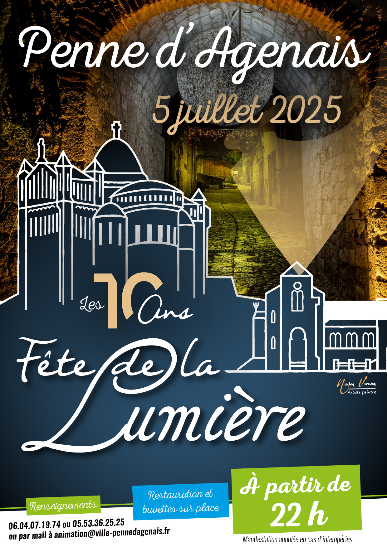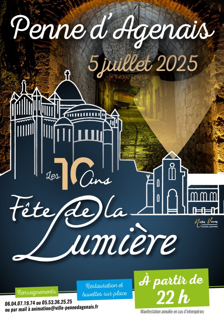 Mise en lumière du bourg du village de Penne d’Agenais, avec illuminations, spectacles, animations, foodtruck, concert et navette.