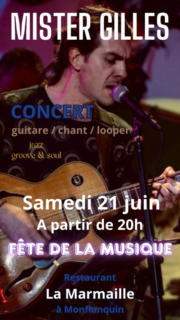 Fête de la Musique, samedi 21 juin avec « Mister Gilles » pour une soirée Groove & Soul.