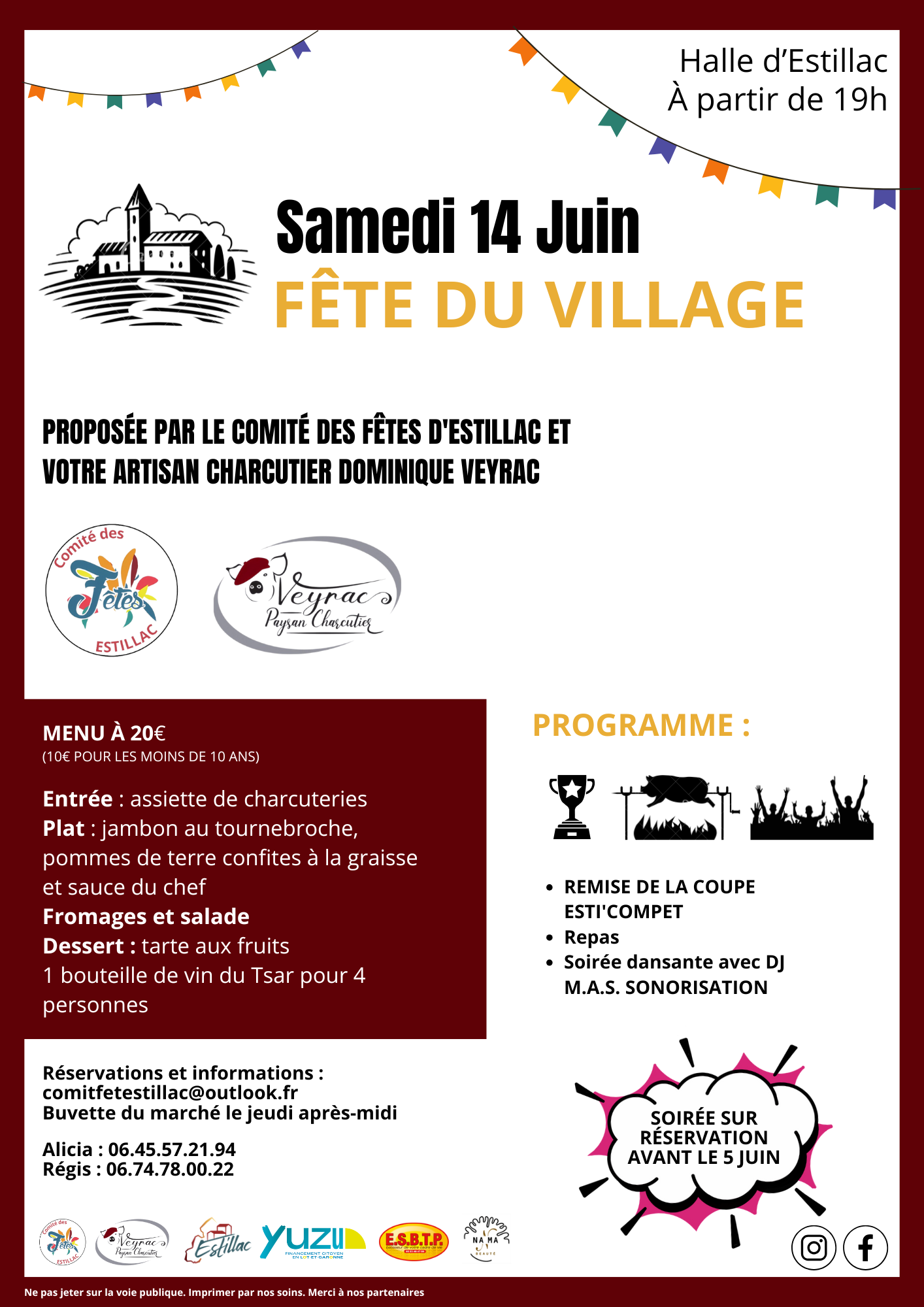 Informations et réservation auprès d’Alicia (06 45 57 21 94) ou Régis (06 74 78 00 22) ou par mail : comitfetestillac@outlook.fr