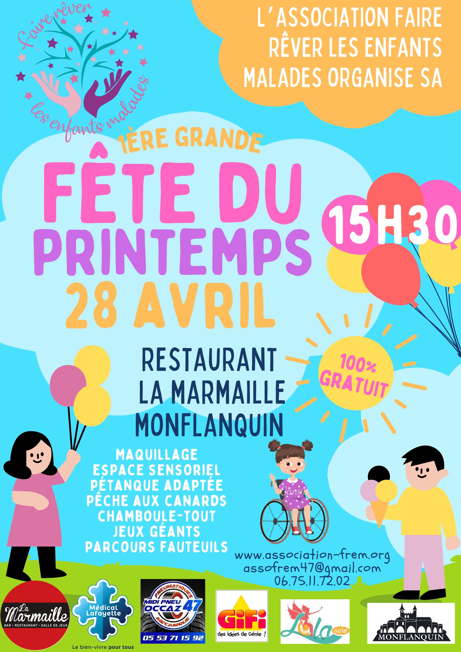 Fête du printemps et des familles de l’association « Faire rêver les enfants malades » au travers de diverses animations en continu tout l’après-midi.