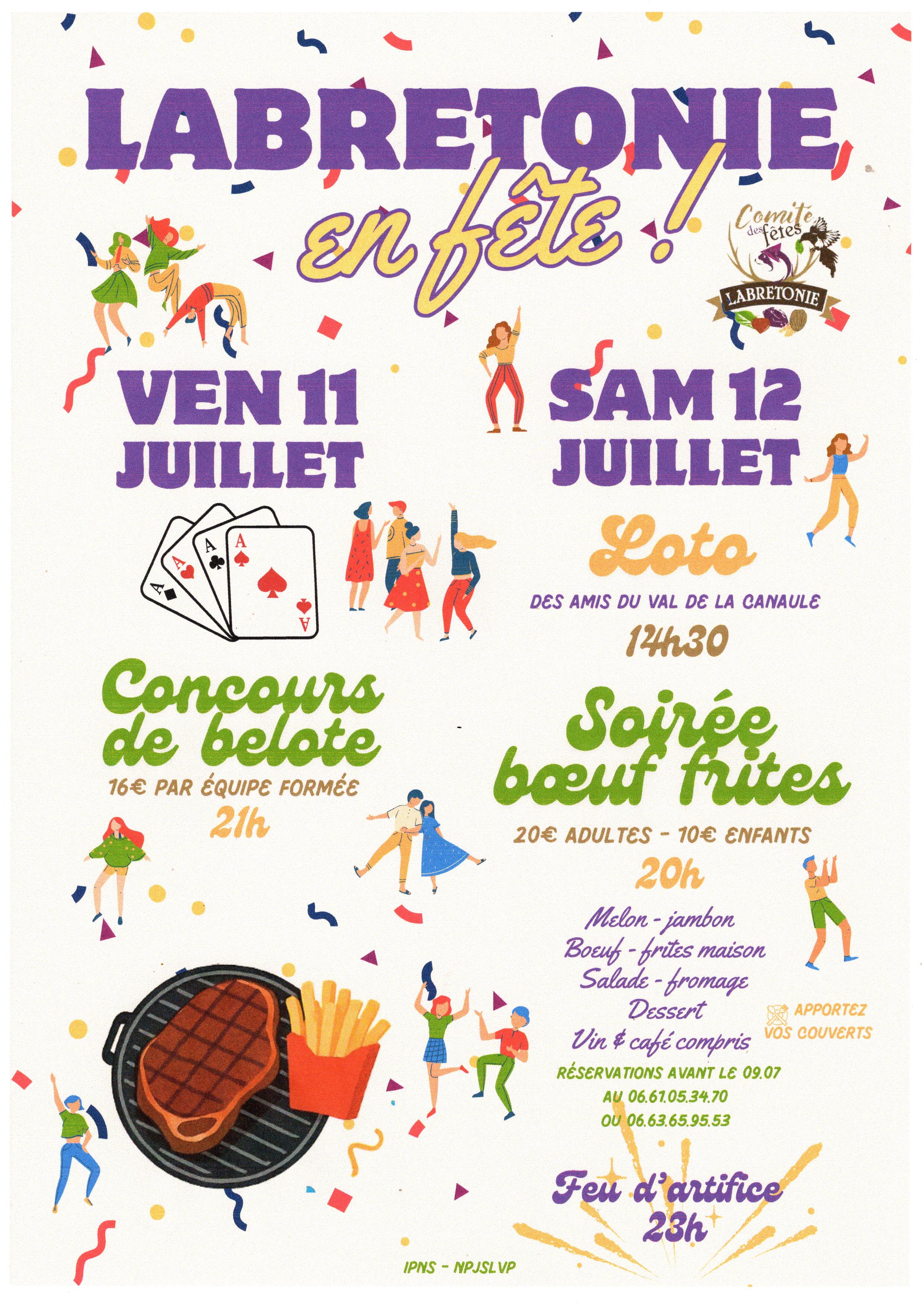 L’équipe du comité des fêtes de Labretonie sera ravie de vous retrouver pour deux jours de fêtes.
