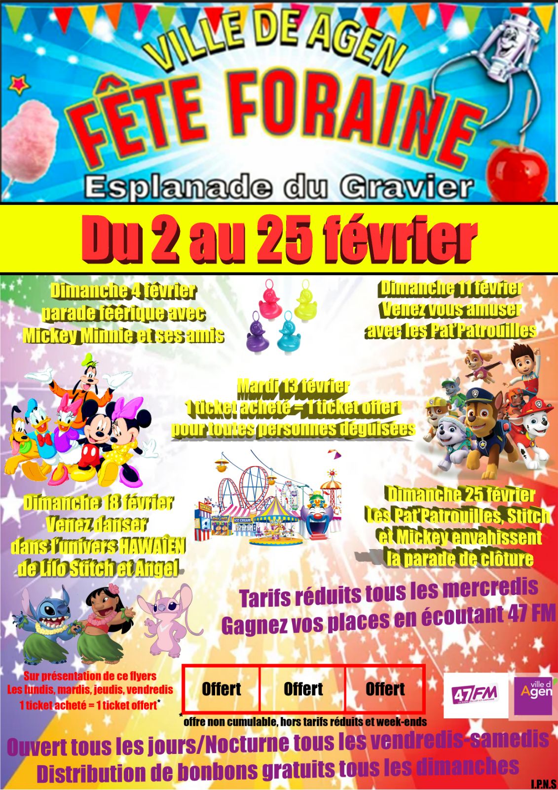 Loisirs Fête foraine Esplanade du gravier - Agen Quai du Gravier Agen Voir tous les événements se déroulant ici du 2 février au 25 février 2024 Familial NC Les Forains 06 89 88 65 71 - 06 78 78 37 66 peterbacquerisse@yahoo.com