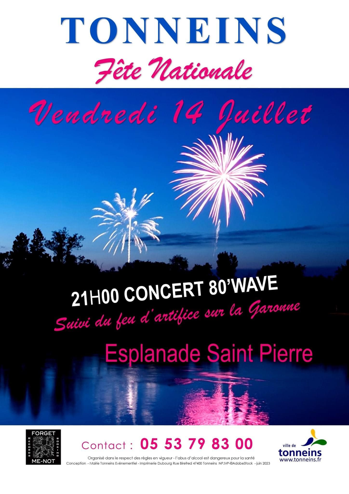 Concert de 80’Wave suivi du feu d’artifice sur la Garonne.