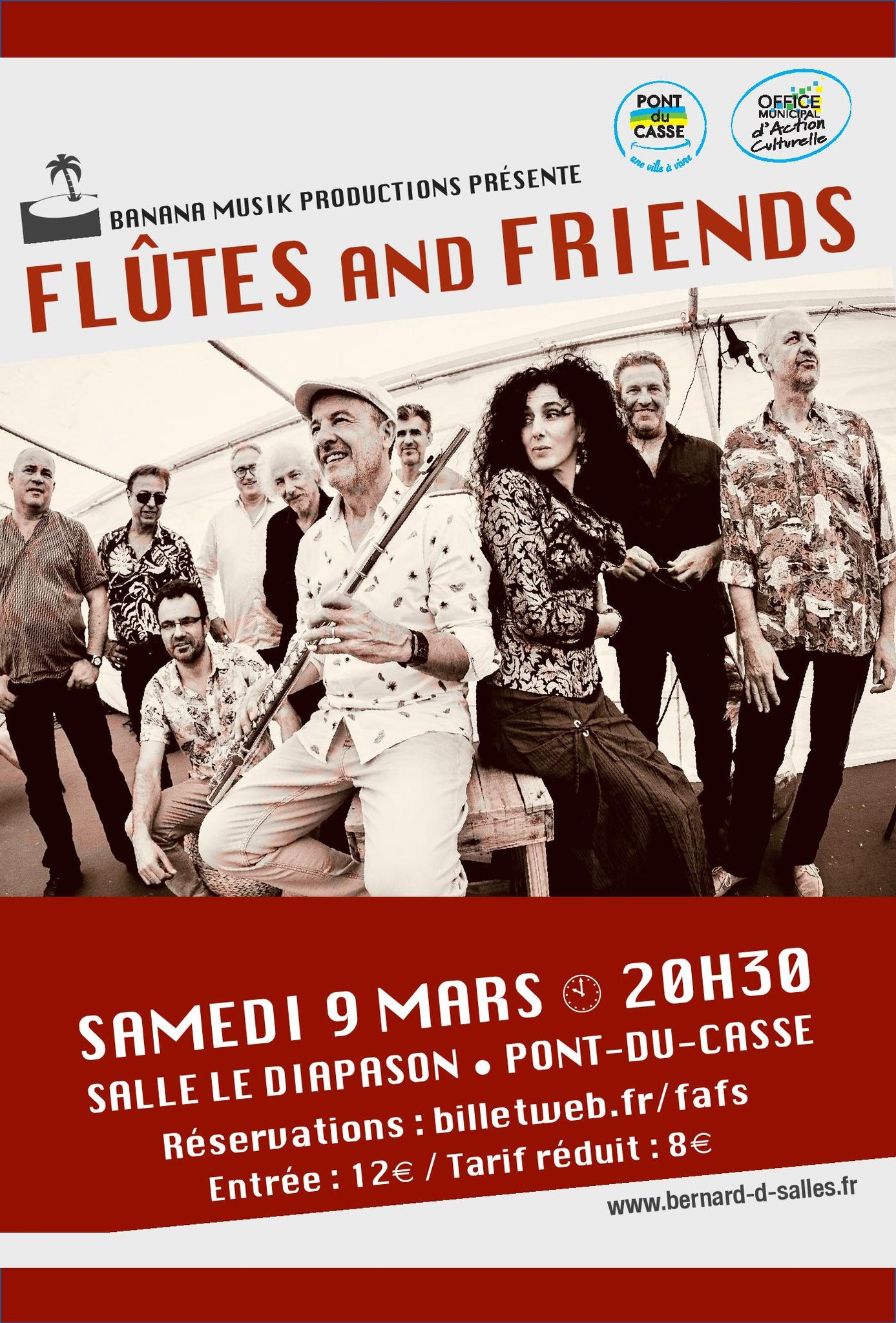 Ce spectacle vous amènera dans une douce balade autour du monde, dans le sable kabyle, les plaines irlandaises, mais aussi à New-York ou au Brésil. Un projet autour de la flûte, qu’elle soit traversière, alto, irlandaise ou de pan, mais aussi autour d’une bande d’une dizaine de copains. Chaque chanson a son identité allant de Nougaro à Didier Lockwood en passant par Erik Satie ou par de belles adaptations telles que « Casse-Noisettes ».