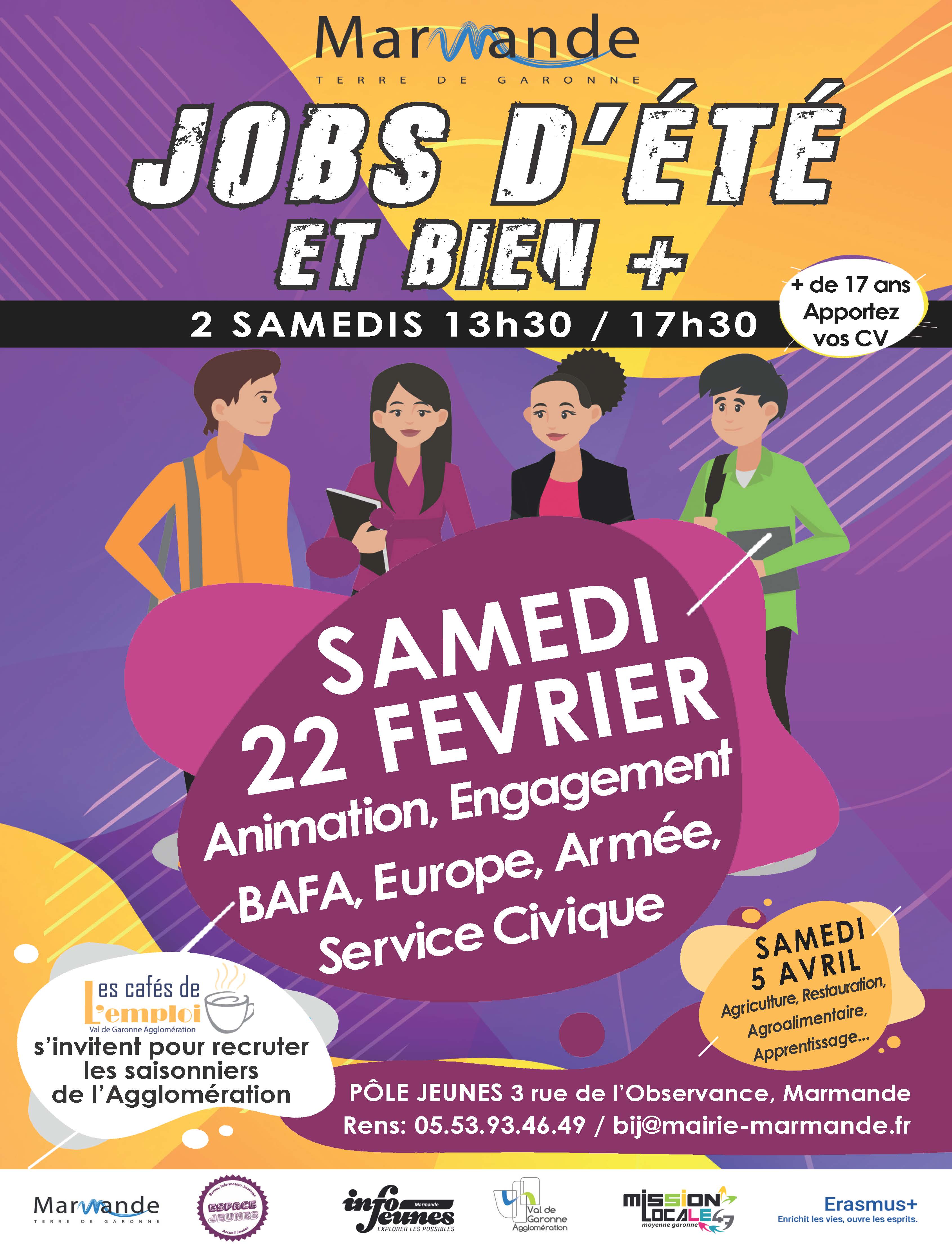 Cet événement s’adresse aux jeunes de 17 à 30 ans en quête d’un emploi saisonnier, d’un stage ou d’une expérience d’engagement.