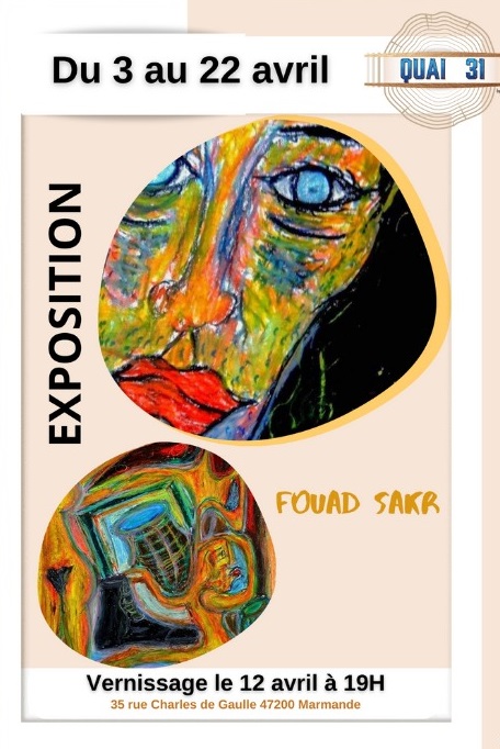 Expositions Fouad Sakr Exposition de peintures Tiers Lieu Quai 31 - Marmande 35 Rue Charles de Gaulle Marmande Voir tous les événements se déroulant ici du 3 avril au 22 avril 2023 Gratuit Vernissage mercredi 12 avril à 19h. Tiers Lieu Quai 31 05 53 64 60 53 accueil.quai31@gmail.com