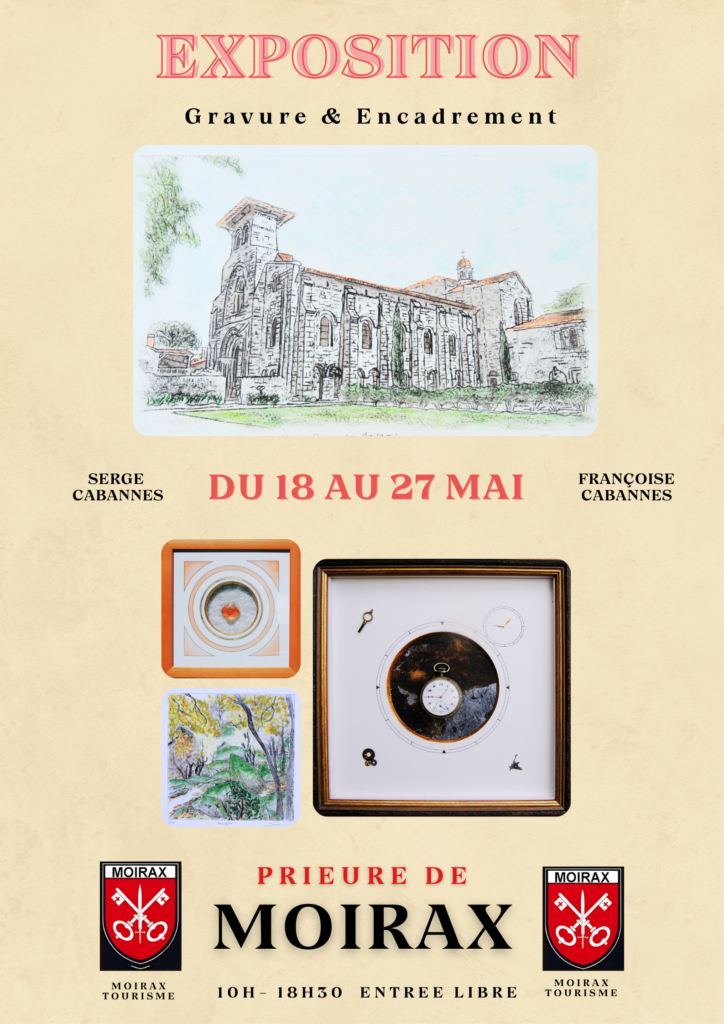 L’association Moirax Tourisme présente une exposition de gravures et d’encadrements de Françoise et Serge Cabannes au Prieuré de Moirax.