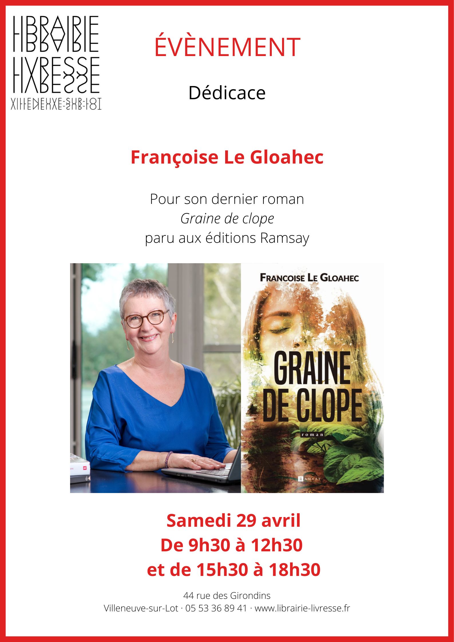 L’auteure Françoise Le Gloahec sera en dédicace à la librairie Livresse pour son dernier livre Graine de clope.