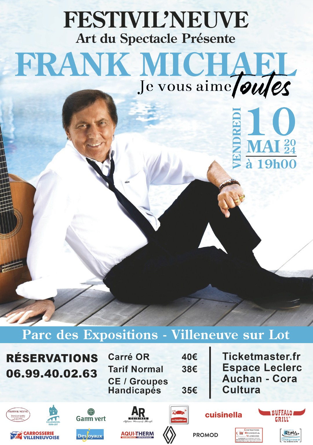 En témoigne un palmarès à faire pâlir les prétendants au Top 50 : 25 ans de carrière et 10 millions d’albums écoulés dans tout un chapelet de pays, de la Belgique à l’Italie en passant par le Canada et même le Japon ! Le public répond présent ! Frank Michael vend des disques et déplace les foules. Voici quelques titres qui ont marqué sa carrière : « Dites-lui que je l’aime », « San Angelo », « Entends ma voix », « Toutes les femmes sont belles », « Il est toujours question d’amour », « Le petit café du grand amour »…