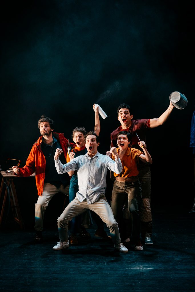 Cinq jeunes comédiens formés à l’art du mouvement, du chant, du mime, du bruitage à l’école internationale de théâtre Jacques Lecoq, nous racontent avec inventivité, humour et poésie les aventures de Frantz, un jeune employé que la perte d’un être cher va complètement chambouler.