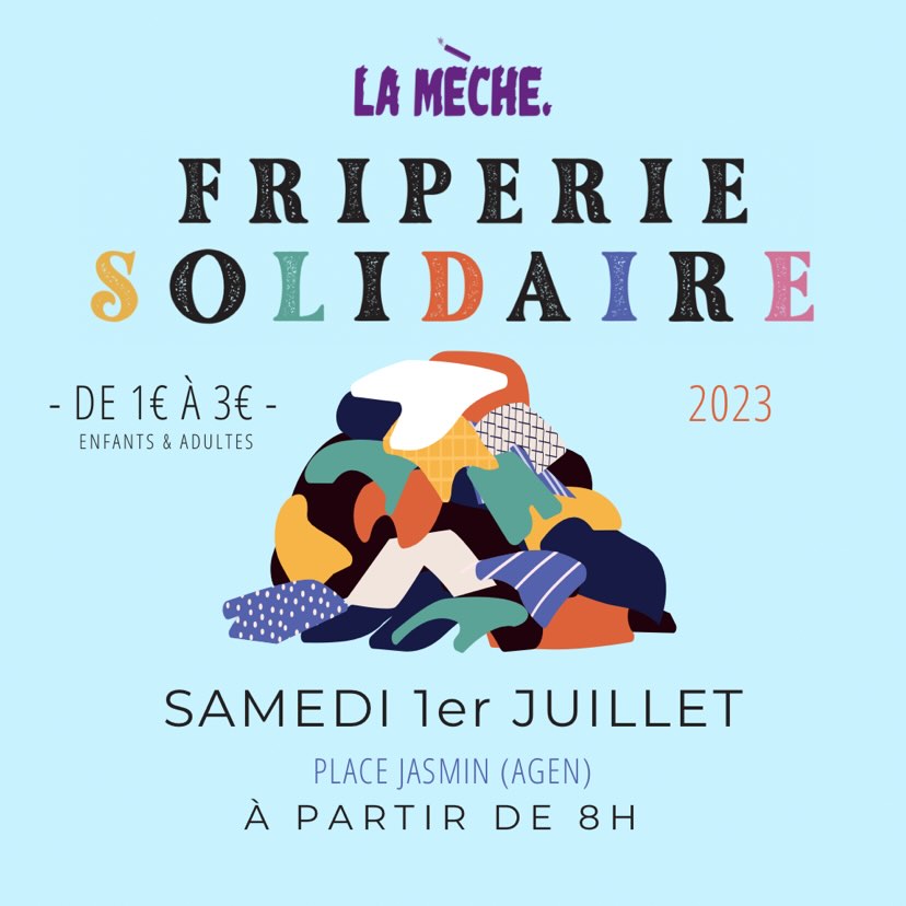 L’association féministe La Mèche organise la troisième édition de sa Friperie solidaire, le samedi 1er juillet 2023, dès 8h, sur la place Jasmin, à Agen.