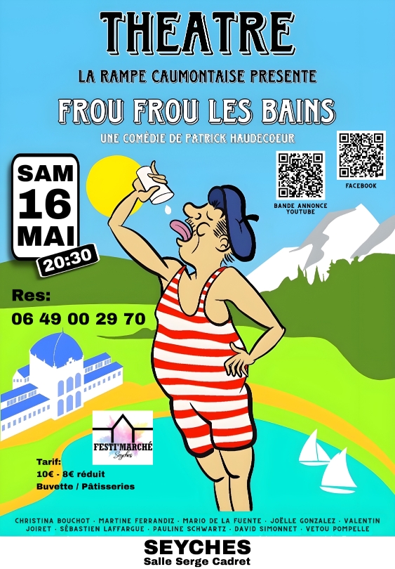 L’auteur à succès Patrick Haudecoeur, signe ici sa célèbre comédie ayant obtenu le Molière du spectacle musical en 2002. Pièce dans laquelle des curistes se retrouvent dans une station thermale… privée d’eau ! Le point de départ d’une parodie d’opérette aux situations aussi absurdes que désopilantes : une remise en forme pétillante et musicale pour tous !!