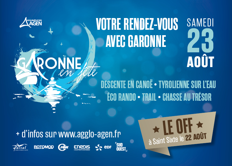 Fière de son histoire et de son lien indéfectible avec Garonne, l’Agglomération d‘Agen organise chaque année un événement autour de son fleuve : Garonne Plage, descente en canoë, trail, animations…