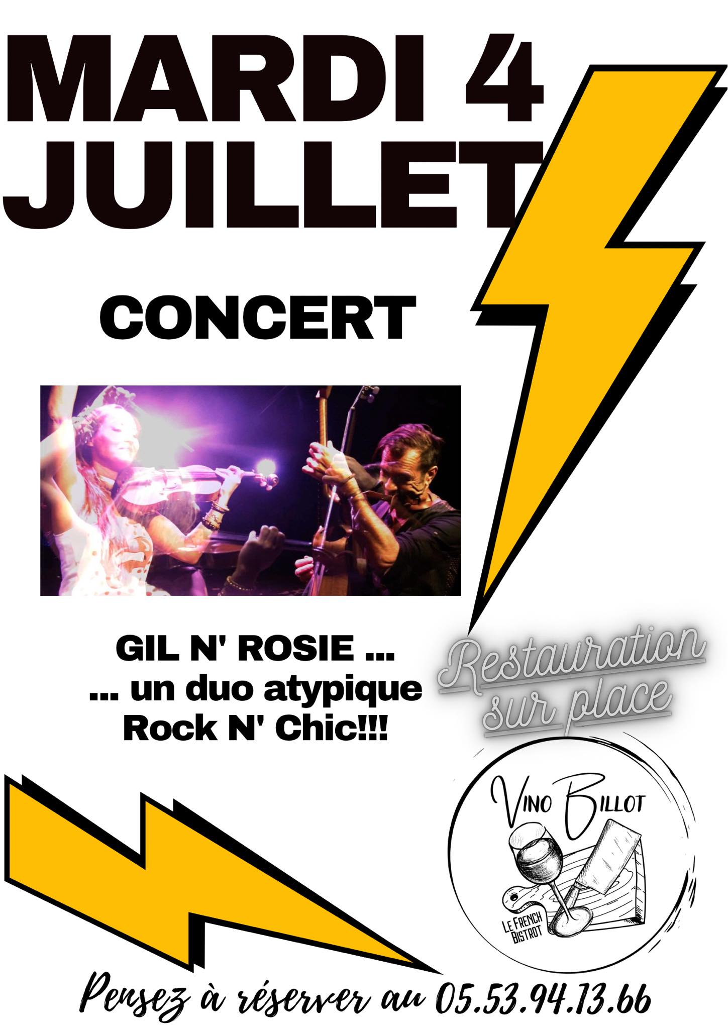 Gil N’Rosie, un duo de reprises rock portées par la voix du violon de Rosie, à la fois rebelle et suave, et par le jeu unique et enragé de Gil à la guitare.