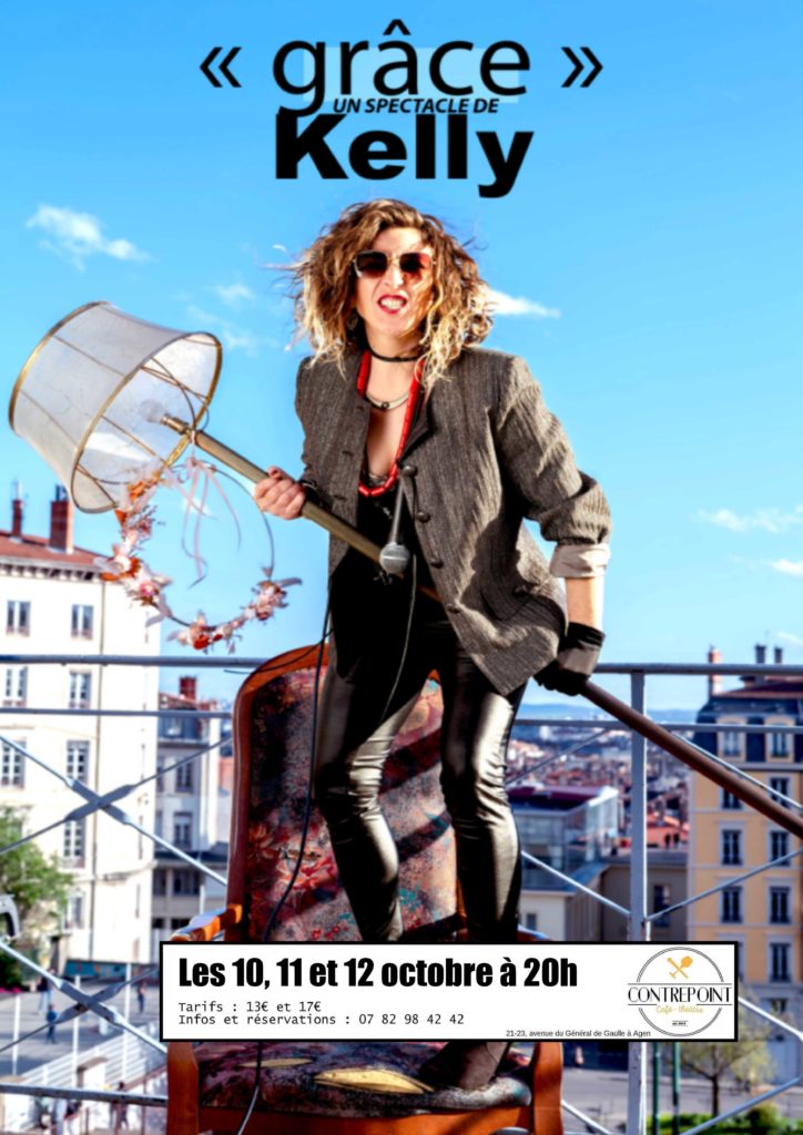 Dans son premier spectacle Kelly vous avouait être amoureuse compulsive, dans son nouveau spectacle, Kelly vient confier avec « Grâce » comment elle s’est soignée, ou presque !