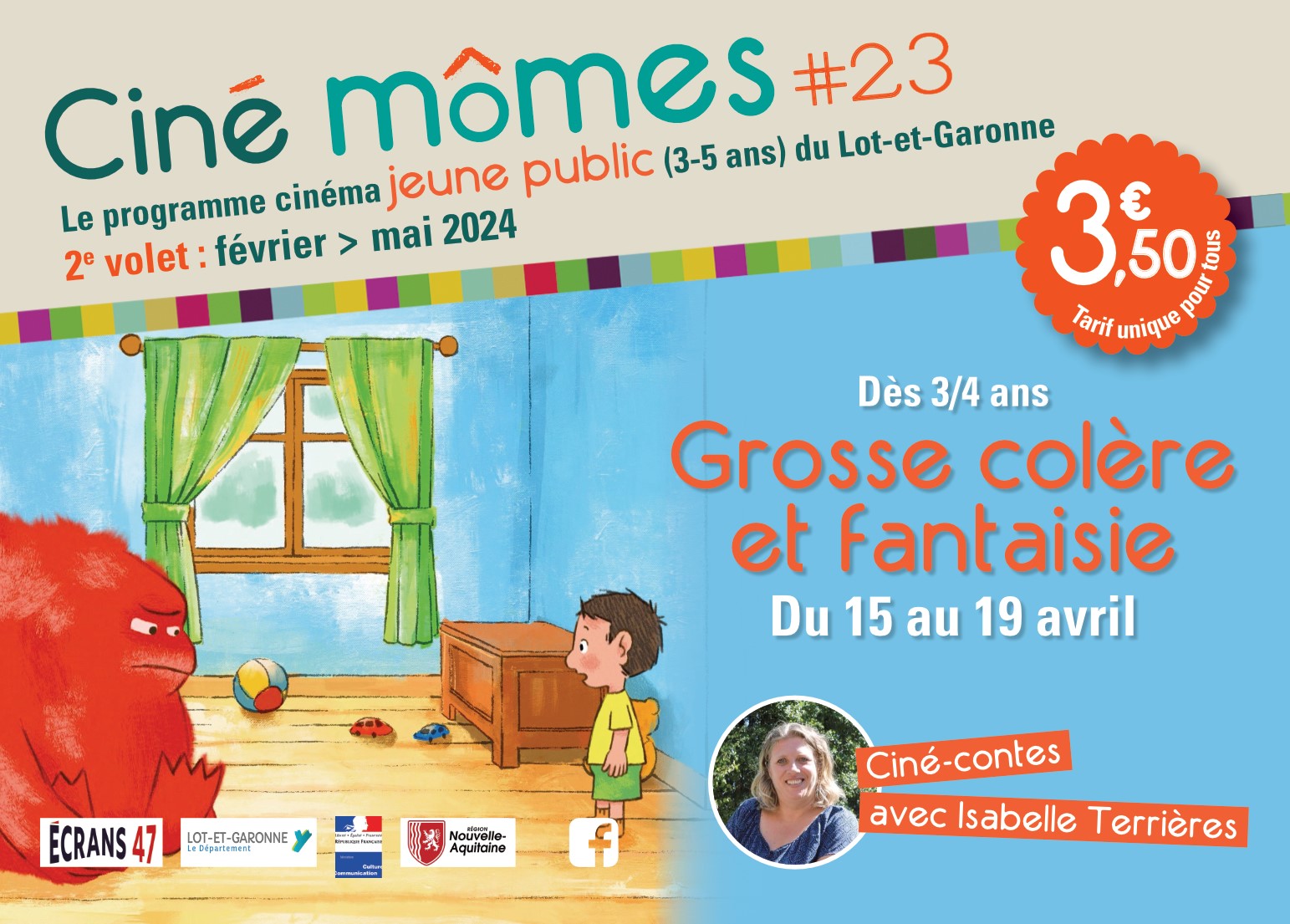 Originaire de Fumel, Isabelle Terrières a créé et initié les Ciné-Contes pour Ciné Mômes il y a plus de 20 ans. Partie vers d’autres horizons en 2020, Ciné Mômes lui manquait tellement qu’elle nous revient en exclusivité pour le plaisir des petits et des grands. Et Isabelle nous concoctera à nouveau ses fameux sandwichs d’histoires :  une histoire racontée,  une histoire regardée jusqu’à épuisement des ingrédients !