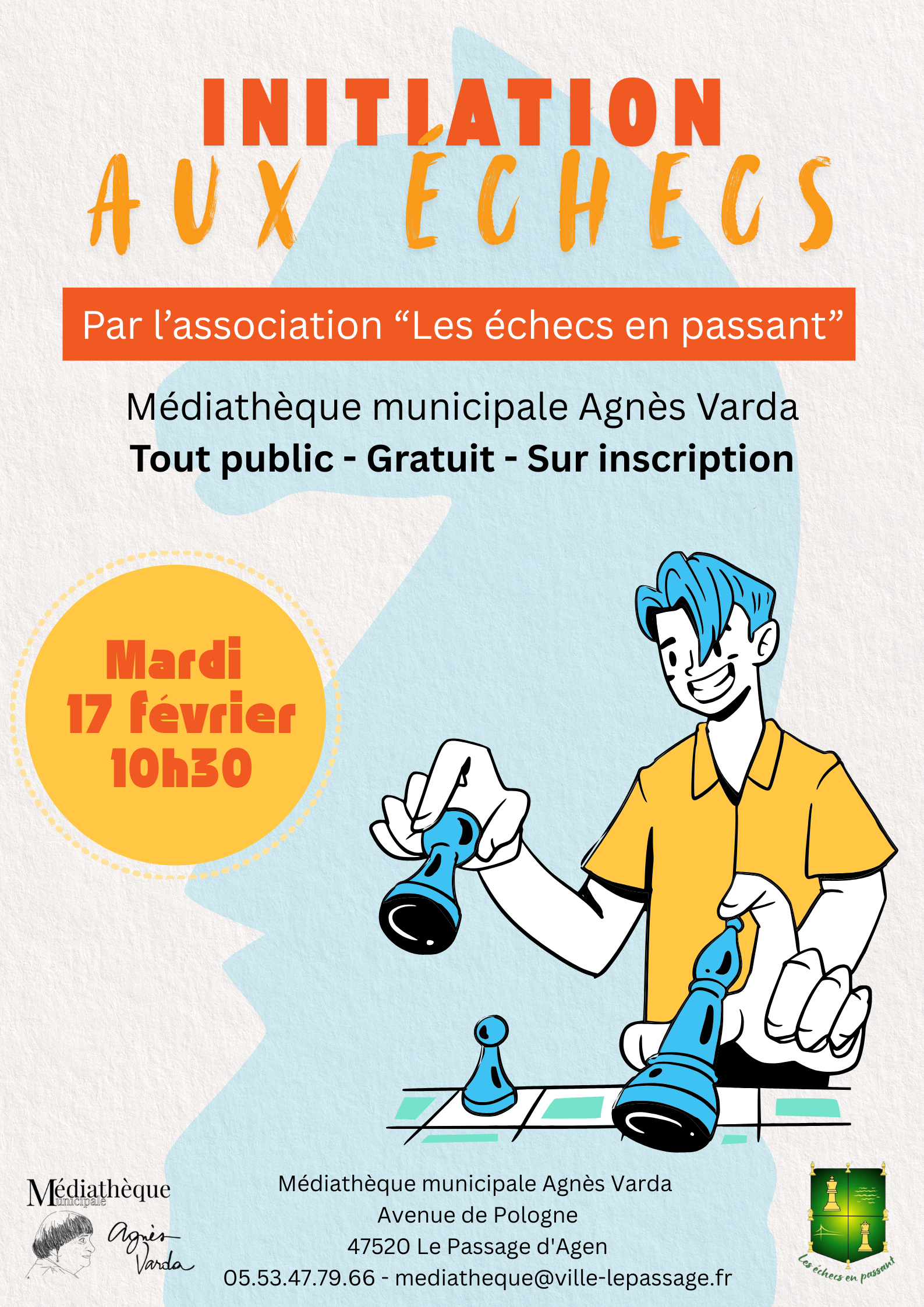 Ce mois-ci une nouveauté s’invite à la Médiathèque municipale Agnès Varda : un atelier d’initiation aux échecs !