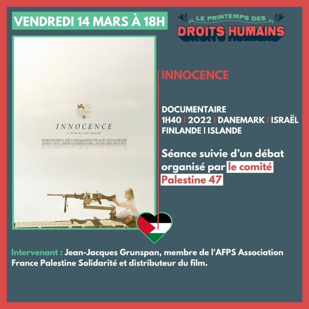 Intervenant : Jean-Jacques Grunspan, membre de l’AFPS Association France Palestine Solidarité et distributeur du film.
