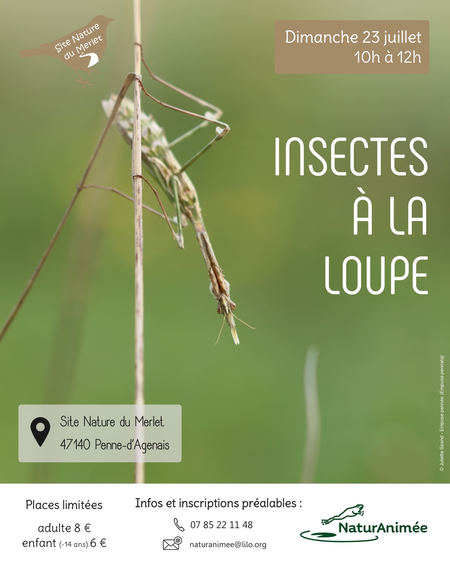 L’été est la saison idéale pour observer les insectes, ça sera donc le thème de la prochaine sortie nature sur le Site Nature du Merlet !