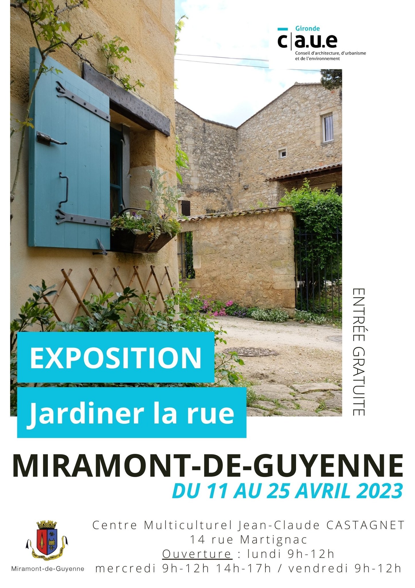 Pour le mois d’avril, la Mairie de Miramont-de-Guyenne vous propose une exposition intitulée « Jardiner la rue », en partenariat avec le Conseil d’Architecture, d’Urbanisme et de l’Environnement (C.A.U.E.) de la Gironde.