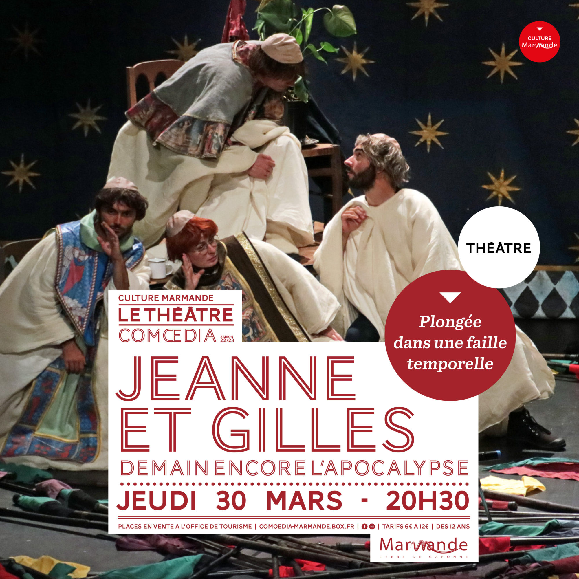 Ce spectacle réunit 6 comédiens pour traiter de ce moment de bascule que représente la fin du Moyen-Âge ; incarné par les figures de Jeanne d’Arc et Gilles de Rais.