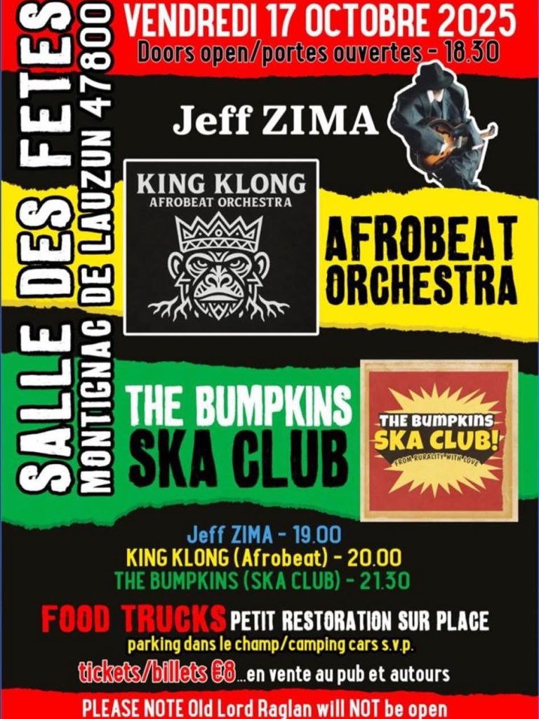 Jeff Zima + King Klong Afrobeat Orchestra + The Bumpkins Ska Club