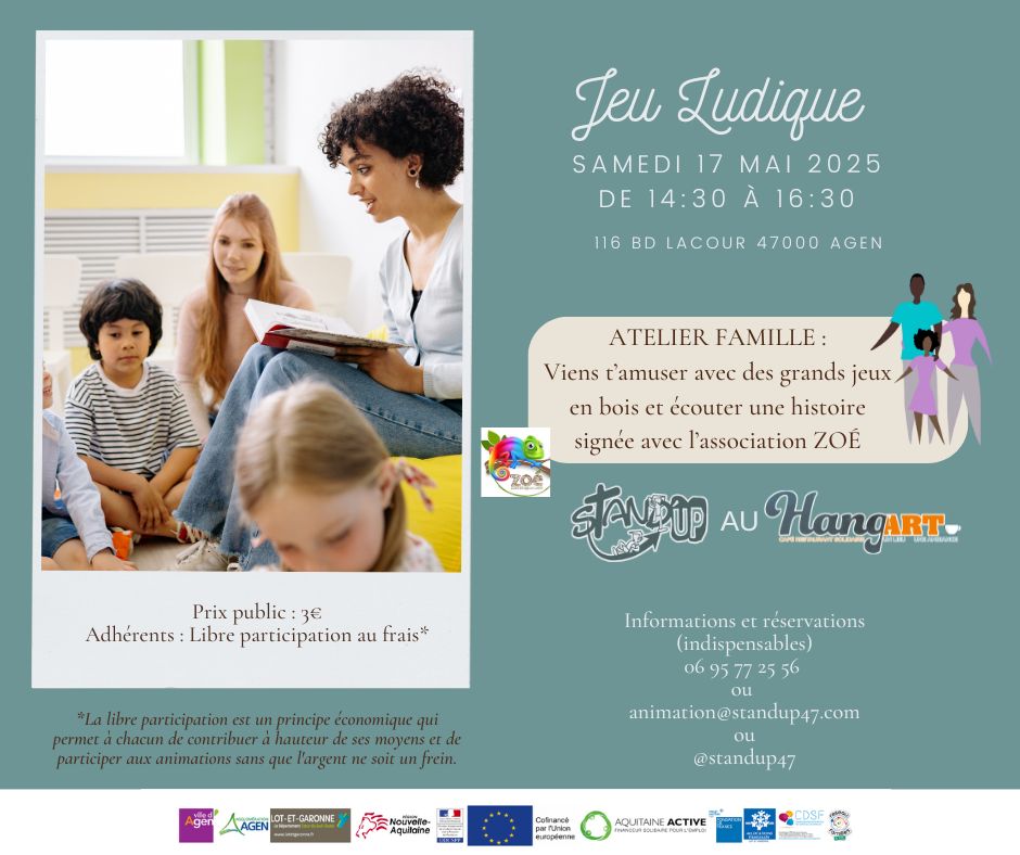 Venez vous amuser avec des grands jeux en bois et écouter une histoire signée avec l’association ZOÉ !