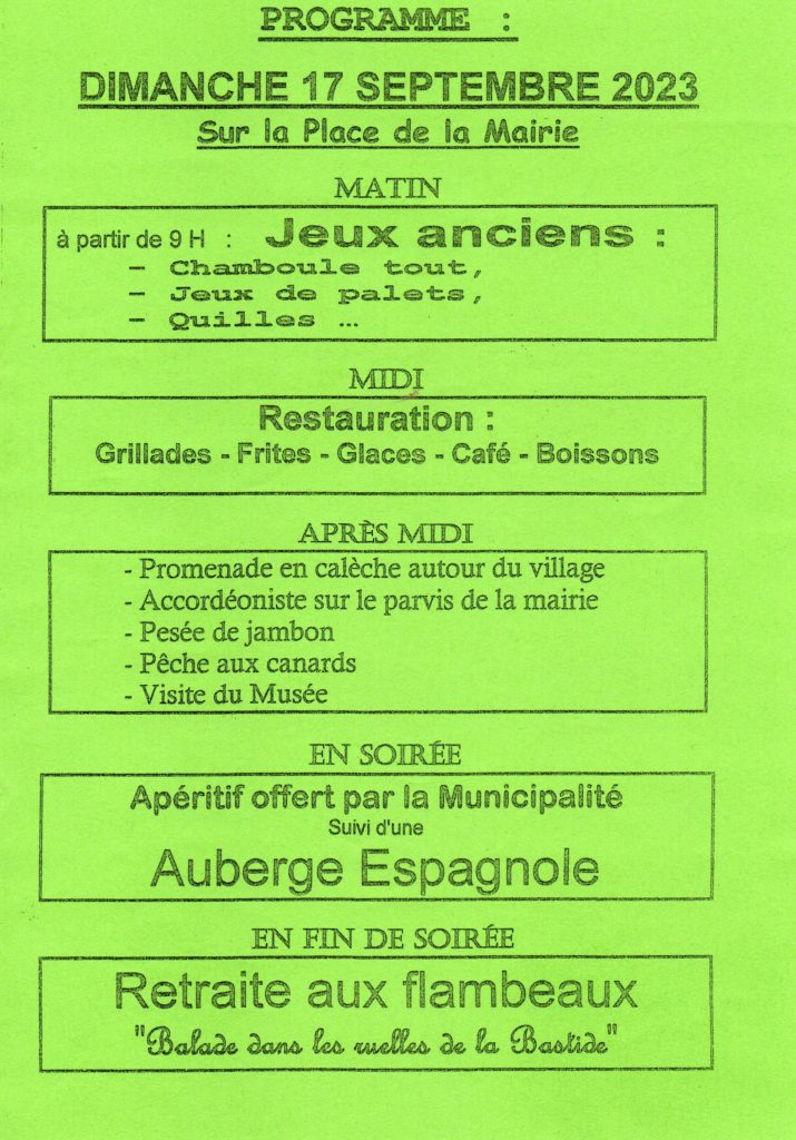 Soirée: apéritif, auberge espagnole suivie de la retraite aux flambeaux