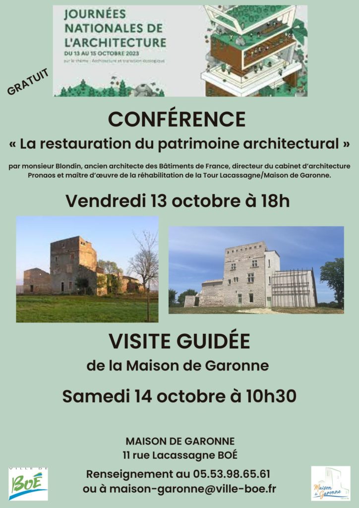 Dans le cadre des Journées Nationales de l’Architecture, la Maison de Garonne vous propose différentes animations :