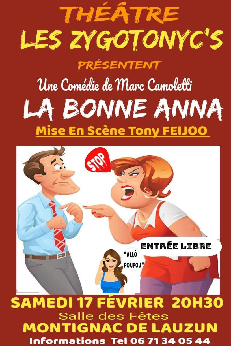 Les Zygotonyc’s présentent une Comédie de Marc Camoletti, mise en scène par Tony Feijoo.Bernard a une très belle situation dans l’électronique tandis que sa femme, Jacqueline, court les ventes aux enchères pour son magasin d’antiquités. Tous deux ont donc maintes occasions de rencontrer des gens que l’autre ne connaît pas. Bernard a rencontré Brigitte et Jacqueline est sensible aux avances de Robert… Heureusement que Anna, bonne à tout faire de la maison, est aussi bonne à tout arranger.