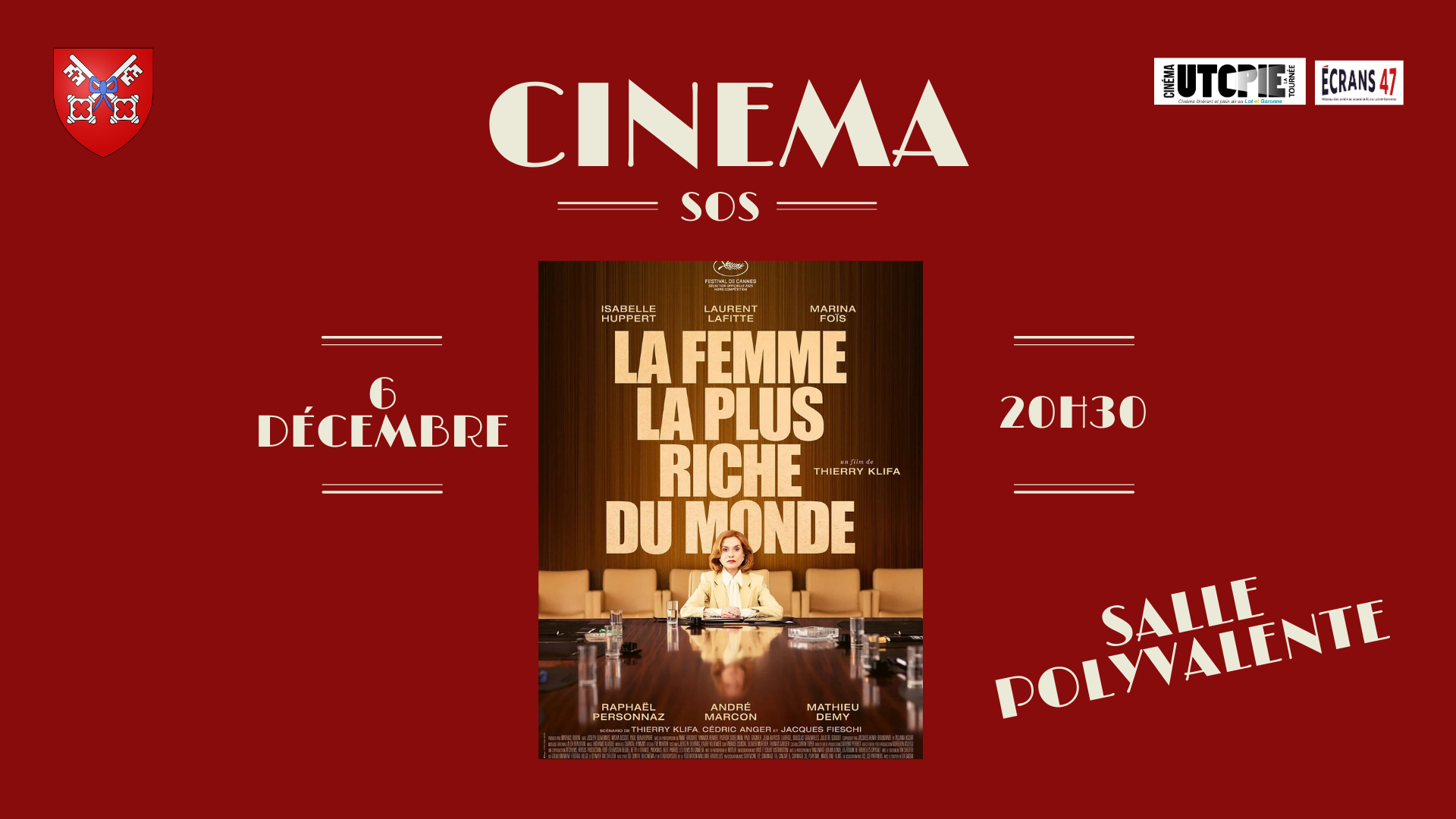 Projection du film La femme la plus riche du monde le 6 décembre à 20h30 à la salle polyvalente de Sos.