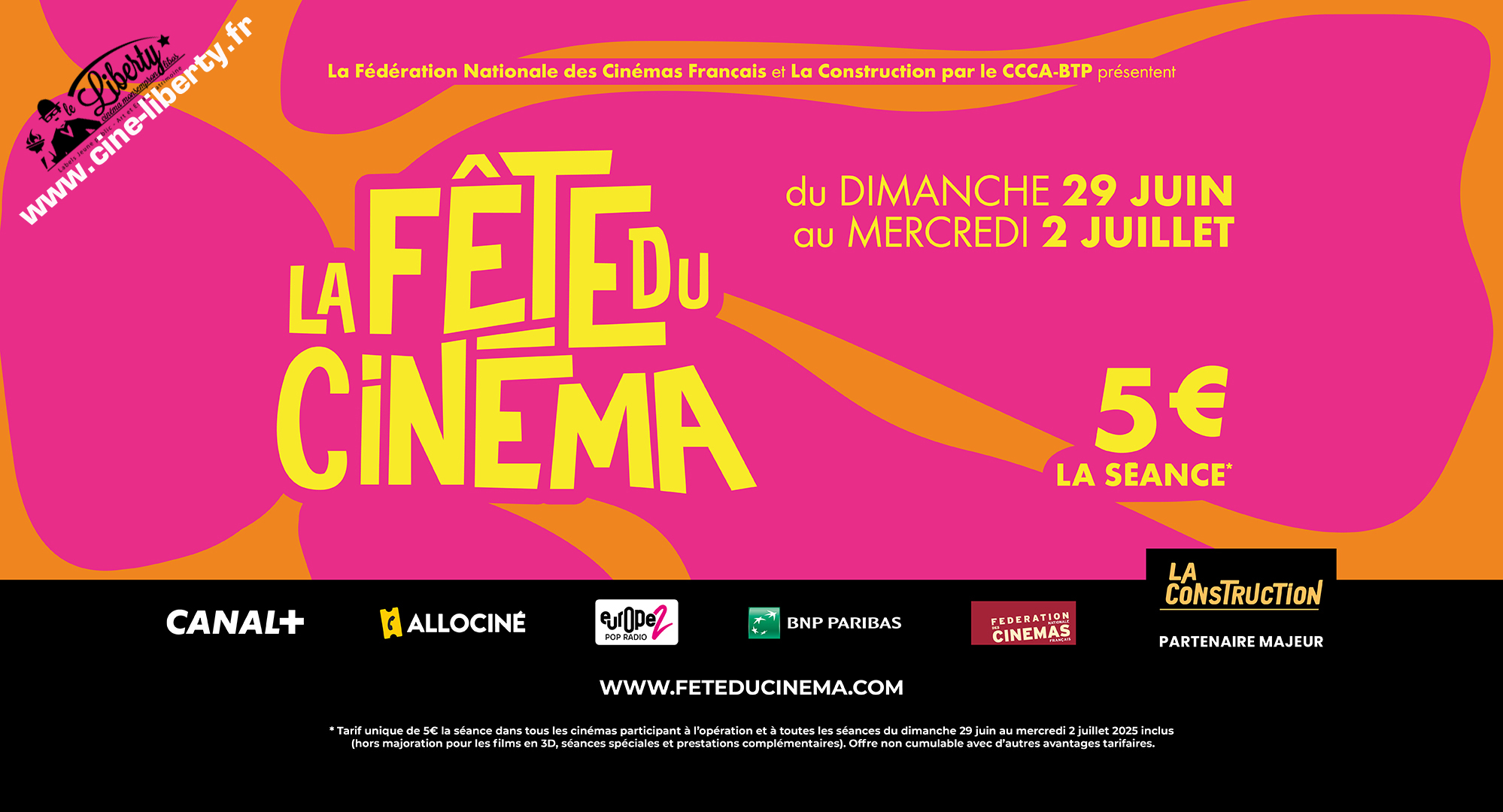 5€50 la séance du dimanche 29 juin au mercredi 2 juillet 2025.