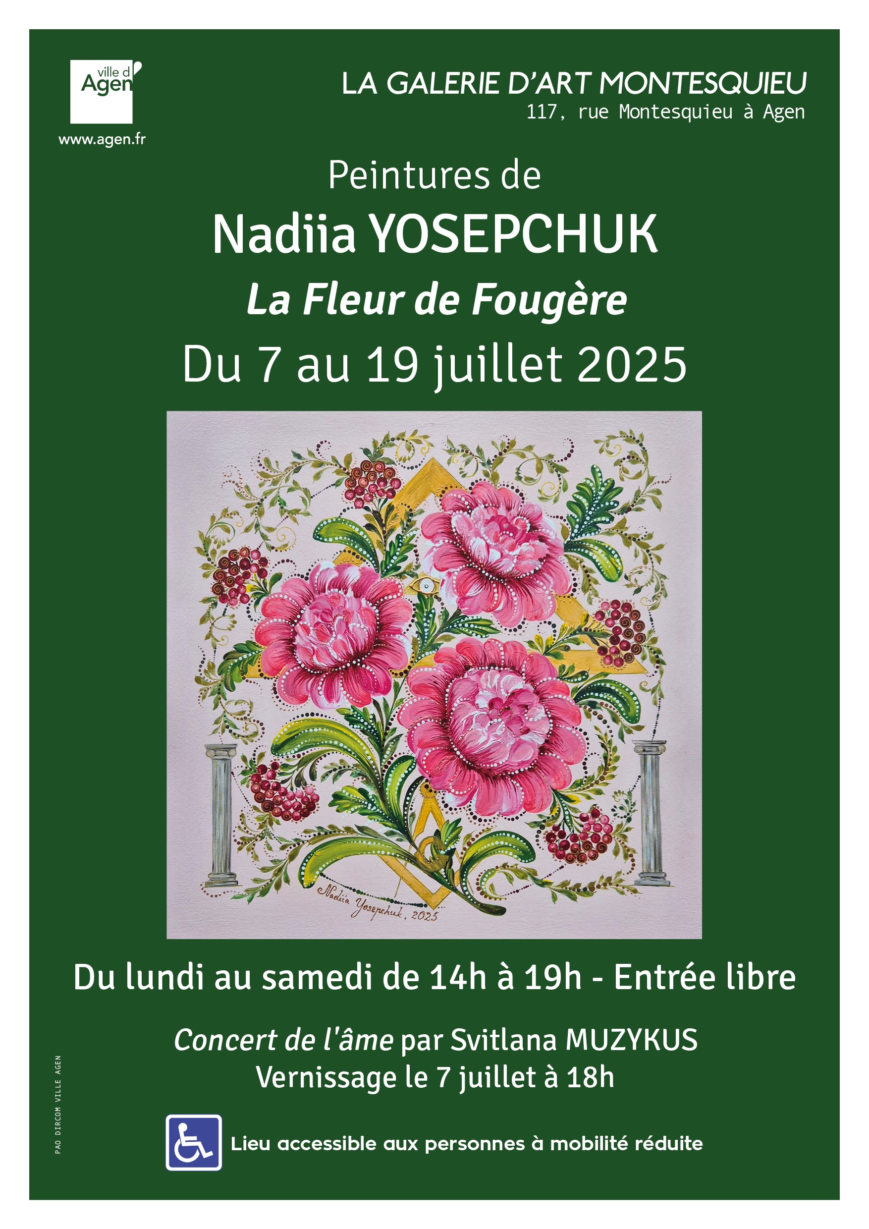 La Galerie Montesquieu accueillera l’exposition de peintures « Fleur de Fougère » de Nadiia Yosepchuk, artiste ukrainienne installée en France depuis 3 ans.