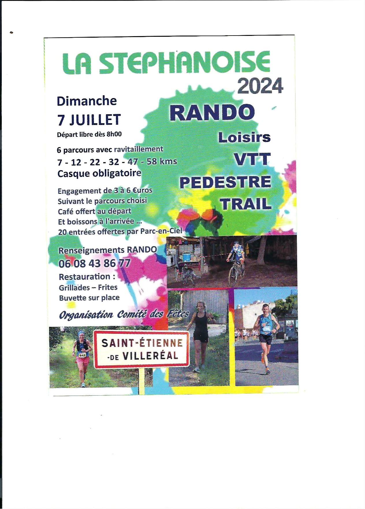Journée festive à St Etienne de Villeréal, avec les randonnées de la Stéphanoise : pédestre, trail et VTT, sur 6 circuits balisés avec des points de ravitaillement.