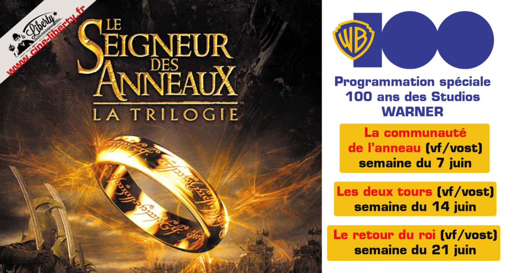A l’occasion des 100 ans des studios Warner, nous vous proposons la ressortie en 4k de la trilogie de Peter Jackson, Le Seigneur des Anneaux du 7 au 27 juin en vf et vost:
