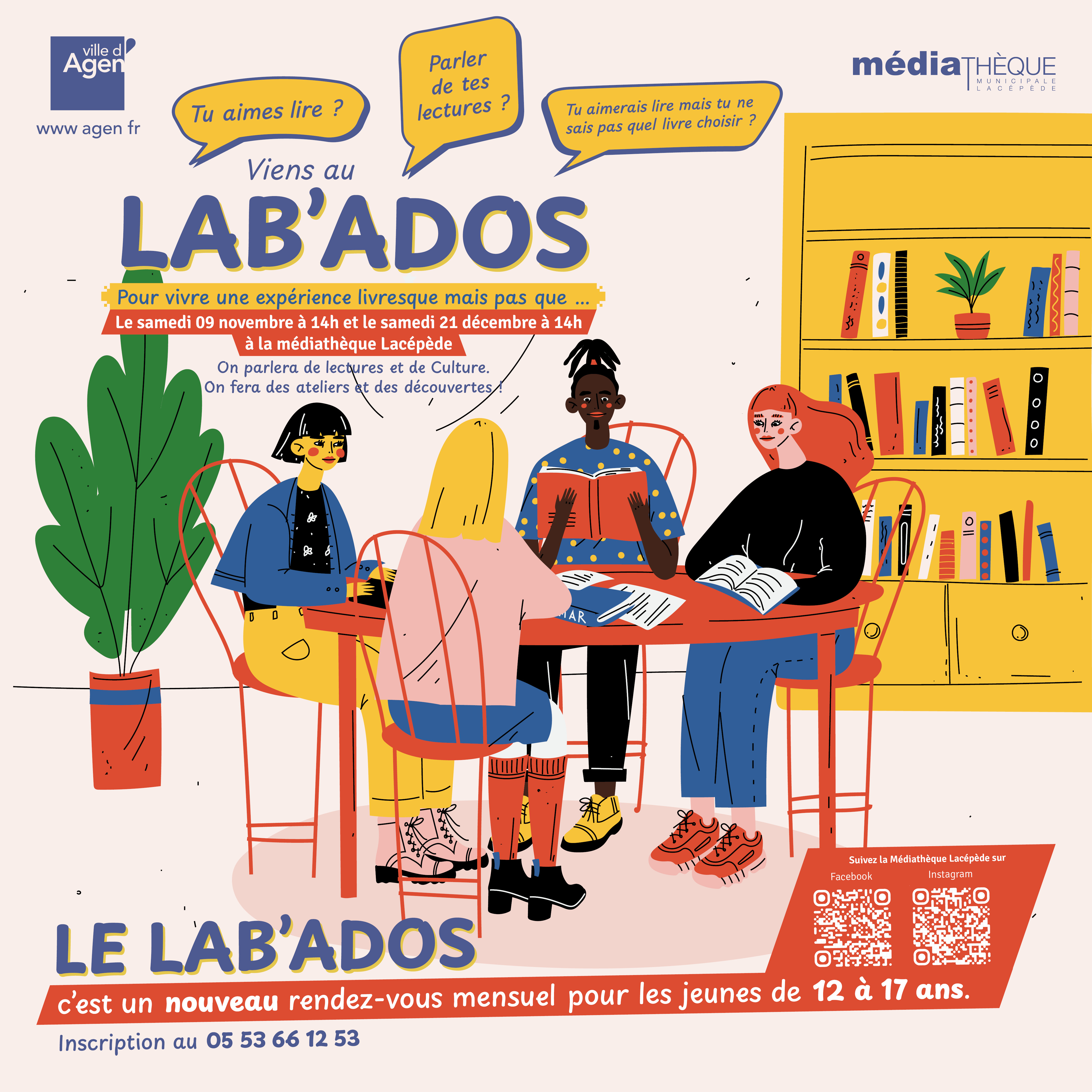 Tu es curieux ? Tu aimes lire ? Viens discuter et échanger avec d’autres ados, partager tes passions, tes coups de cœur littéraires, musicaux, ludiques et découvre ceux des autres, avec Rose et Séverine.