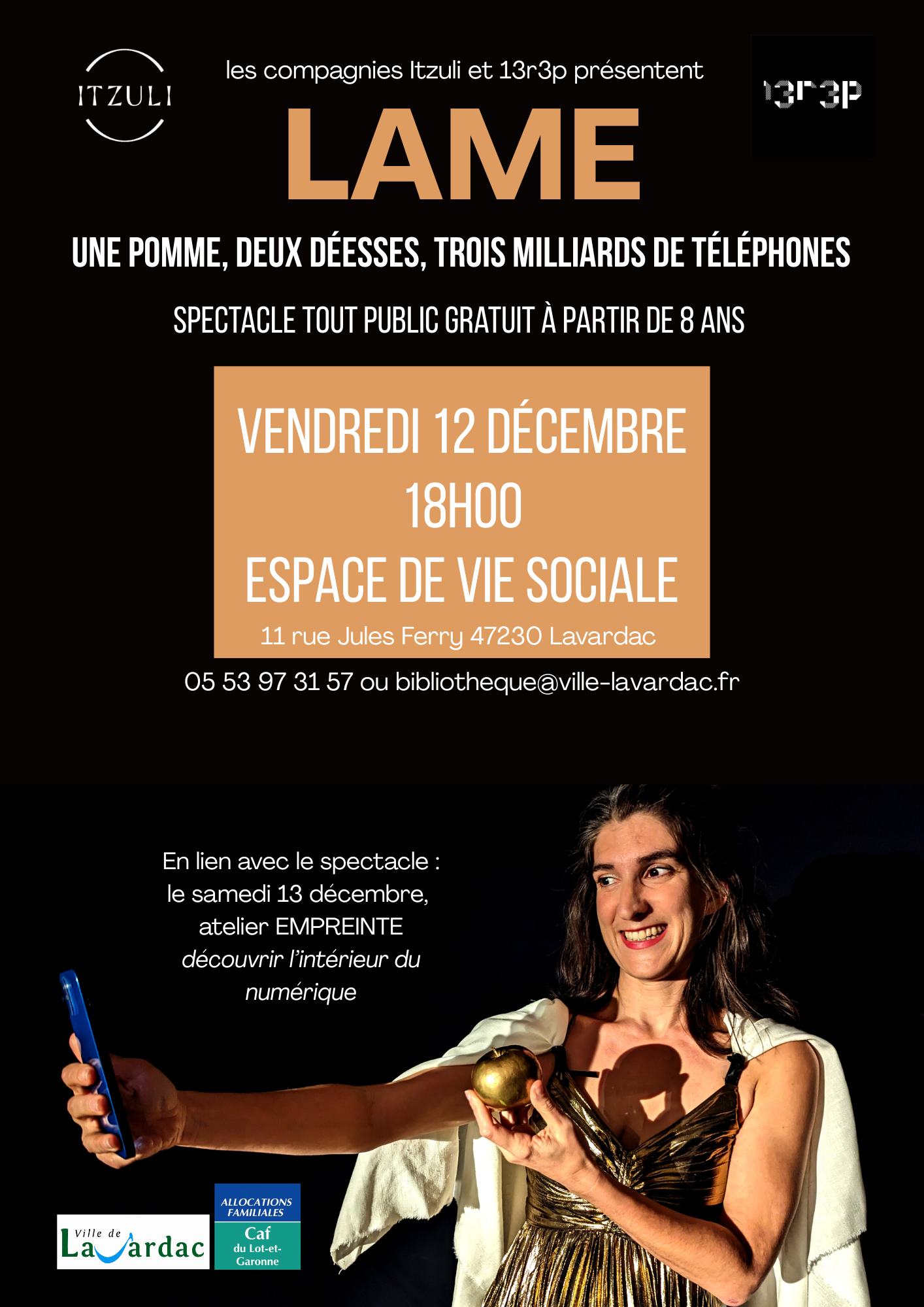 Spectacle « Lame : Une pomme, deux déesses, trois milliards de téléphones”.