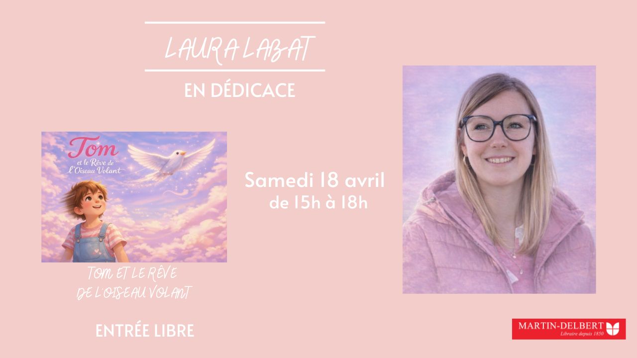 Le samedi 18 avril de 15 à 18h, nous avons le plaisir de recevoir Laura Labat pour la dédicace de son livre jeunesse Tom et le rêve de l’oiseau volant.