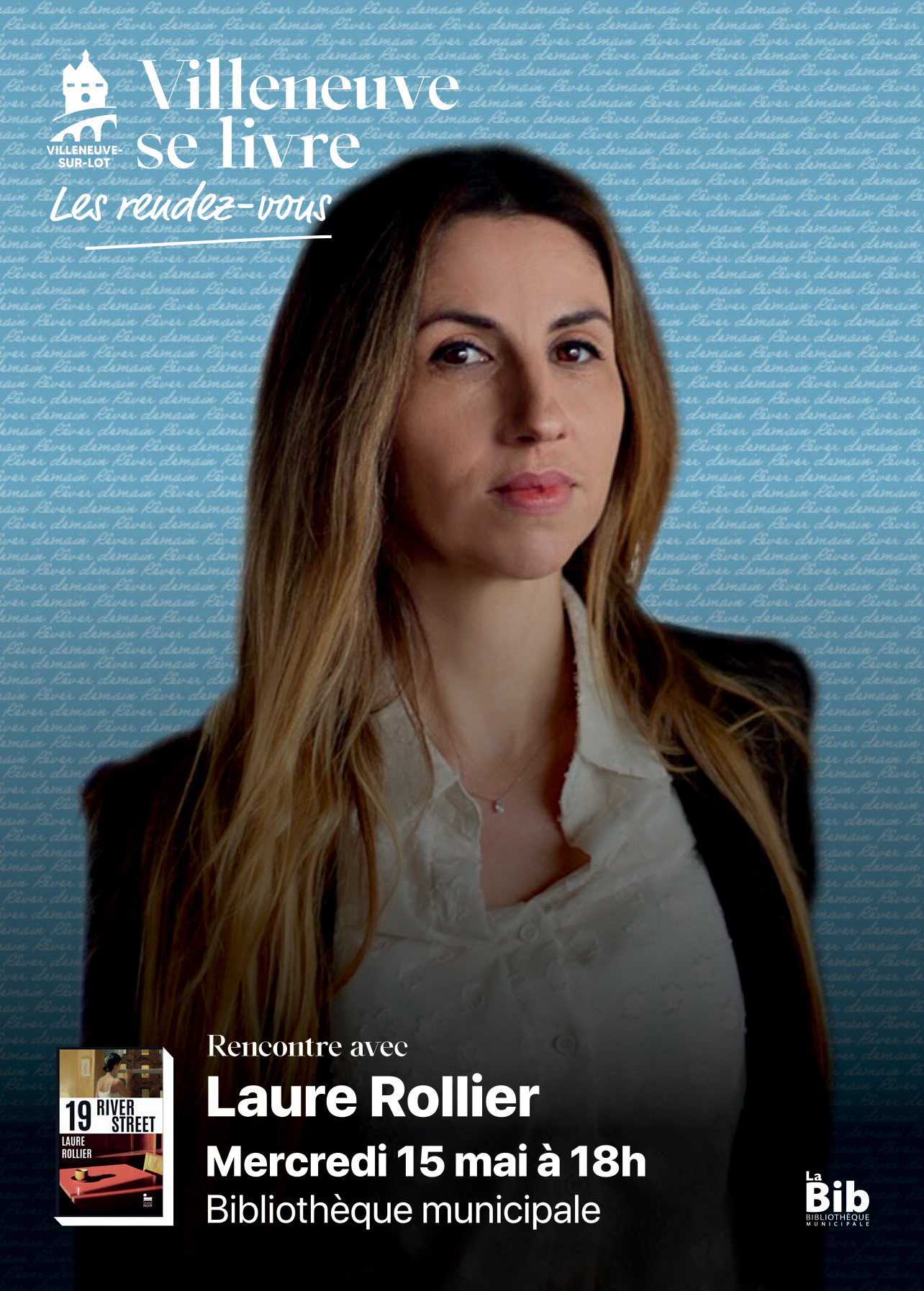En amont du festival Villeneuve se livre, La Bib Villeneuve-sur-Lot vous invite à rencontrer l’autrice Laure Rollier pour une présentation de son dernier roman « 19, River Street » (éd. Récamier, février 2024), un thriller psychologique passionnant.