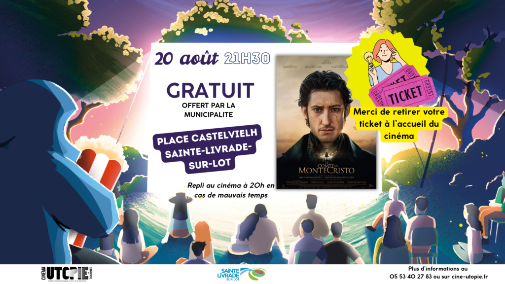 Rendez-vous le 20 août à 21h30 , Place Castelvielh à Sainte-Livrade-Sur-Lot pour une séance en plein air gratuite ! (offert par la municipalité).