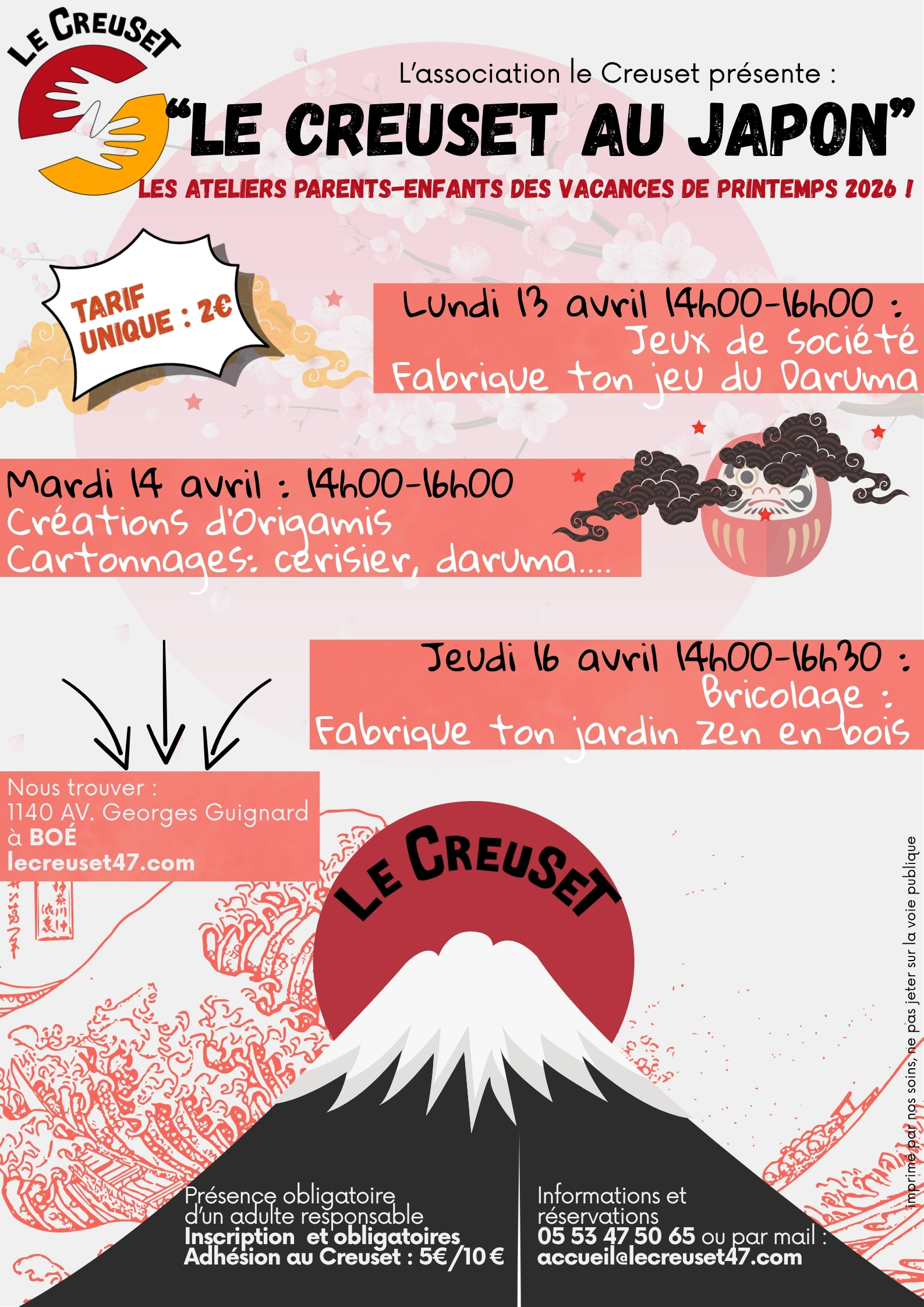 Au programme : fabrication de petits jeux en bois, création d’un jardin zen de A à Z, origamis et merveilleux cartonnages.