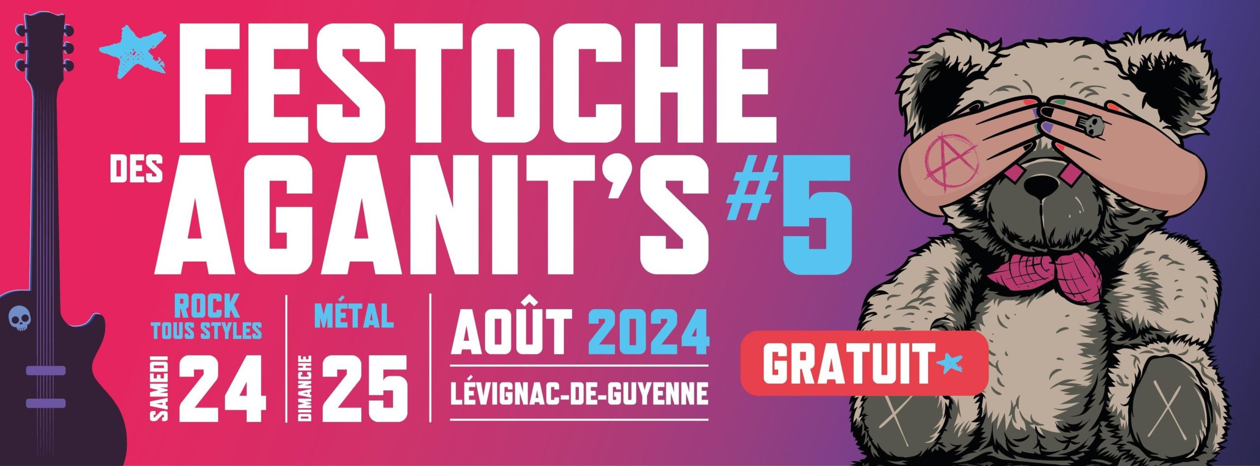 Samedi 24 & Dimanche 25 Août à Lévignac de Guyenne Le Moto Club Privé Les aganit’s organise sa 5è édition du Festoche des Aganit’s !Au programme :Samedi : Rock tous typesDimanche : Métal