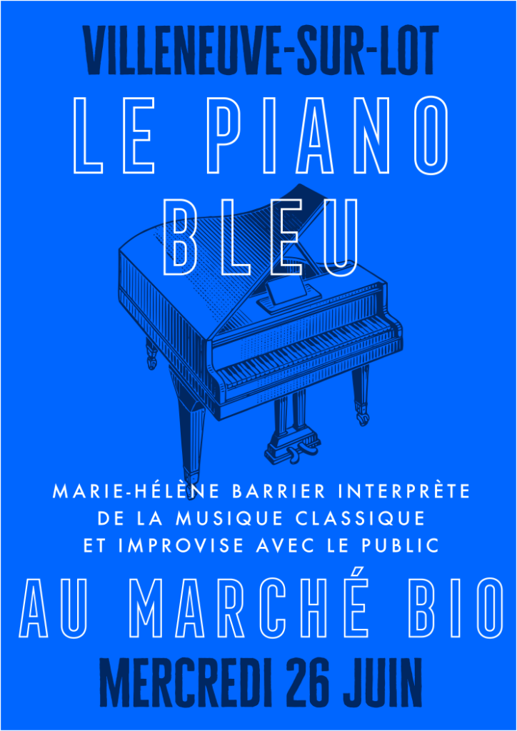 Dans le décor de la halle du marché de la place d’Aquitaine, la pianiste Marie-Hélène Barrier interprète un répertoire de musique classique et improvise des chansons avec la participation du public.