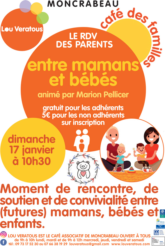 Nous vous proposons un RDV des parents « entre mamans et bébés/enfants » animé par Marion Pellicer.