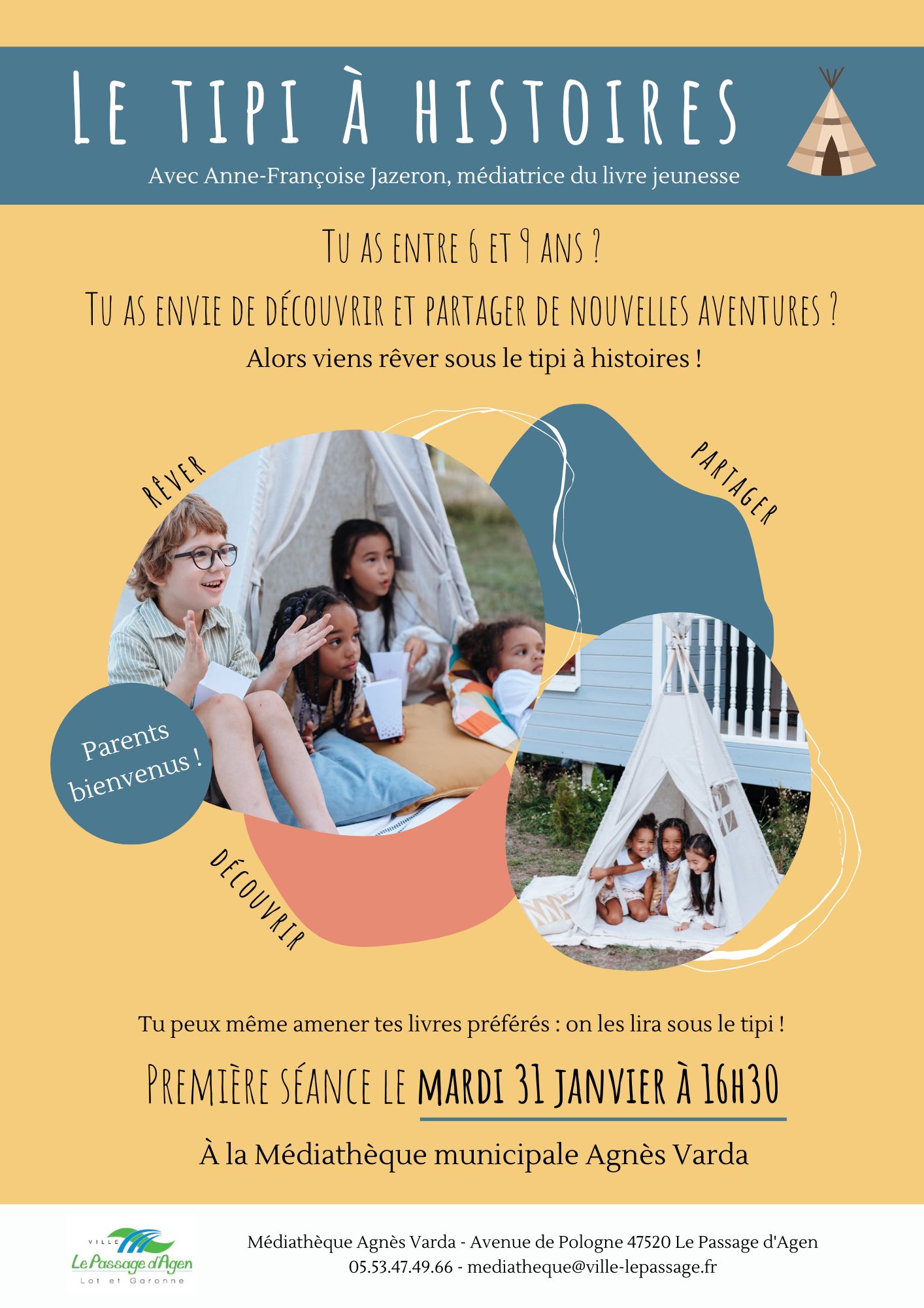 Tu as entre 6 et 9 ans ? Tu as envie de découvrir de nouvelles aventures et d’écouter des histoires sous le tipi à histoires ?