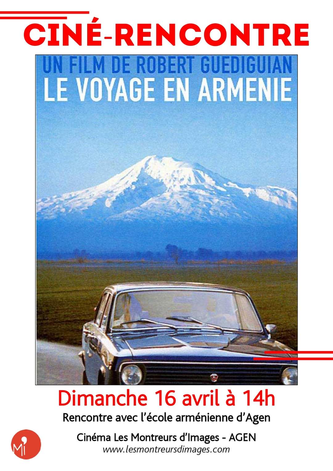 Le film « Le Voyage en Arménie » de Robert Guédiguian sera suivi d’une discussion et d’un spectacle des enfants de l’Ecole Arménienne d’Agen ainsi que d’un goûter arménien offert aux spectateurs avec l’association « Le Petit Arménien ».