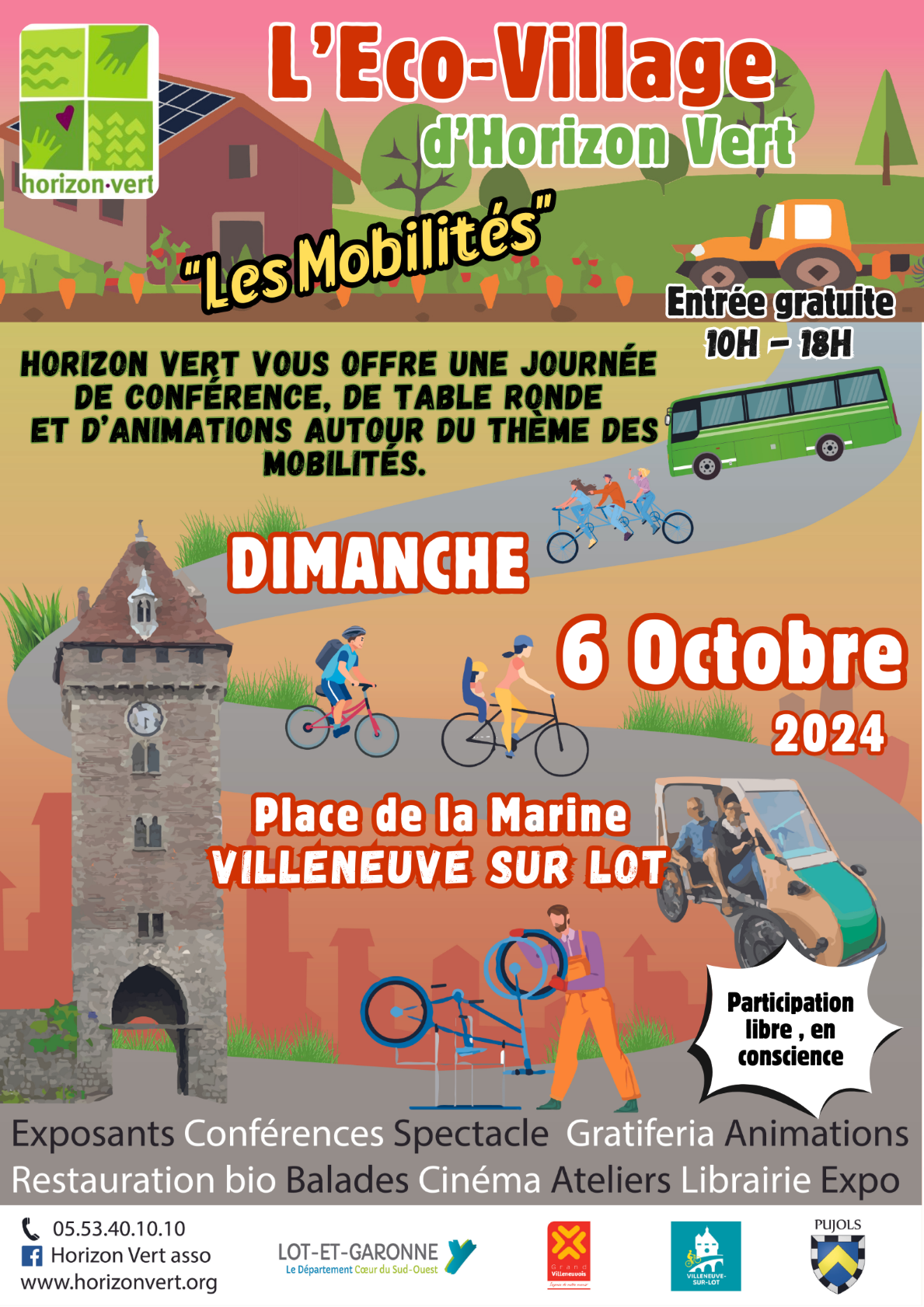 Le dimanche 6 octobre 2024, de 10h à 18h, l’association Horizon Vert, vous propose conférence, table ronde et multiples animations sur le thème des mobilités.