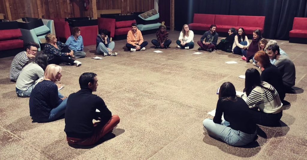 Cours dispensés par Camille Dufour. Assistant : Zacharie Gauthier.- A 17h Leçon ouverte de l’atelier théâtre adultes et de l’atelier écriture et poésie des oracles : explication du travail sur les archétypes, mitraillette poétiques, exercice, improvisations, teaser et présentation des spectacles de fin d’année : «Le Voyage du Héros » et «E.Albert – spectacle sur la vie d’Albert Einstein» qui auront lieu le dimanche 26 mai.