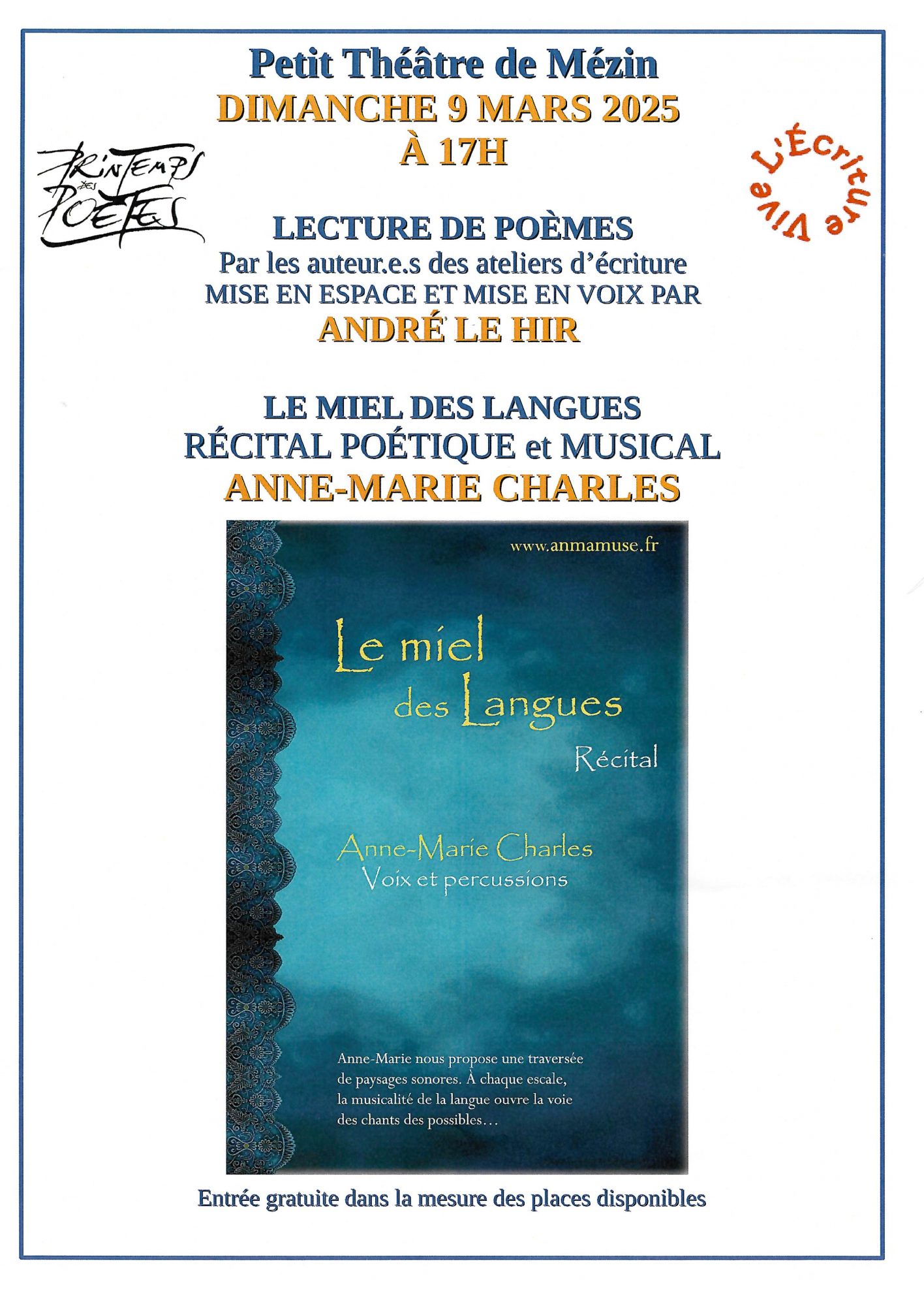 « Le miel des Langues » : récital poétique et musical par Anne-Marie Charles.