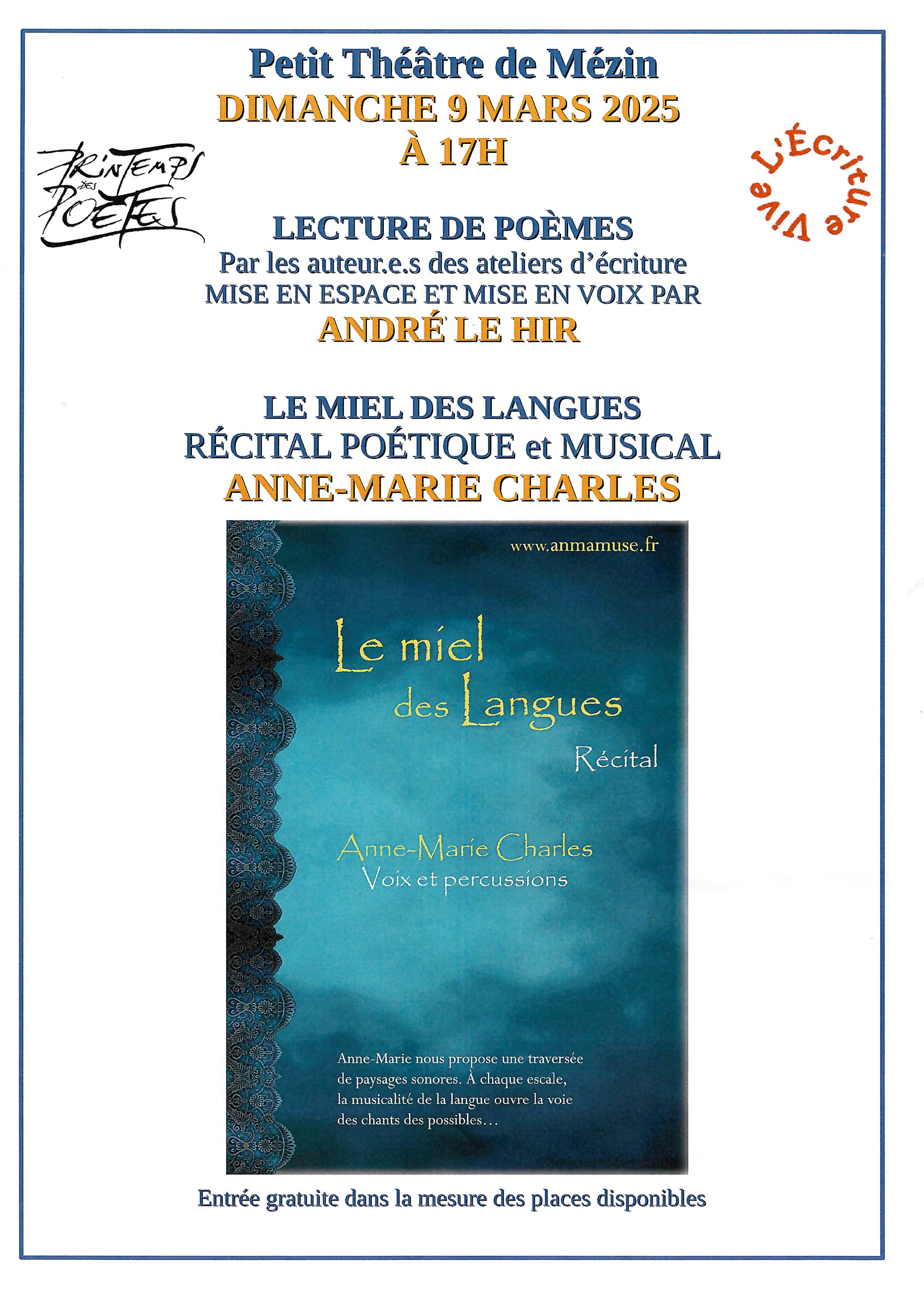 Lectures de poèmes par les auteur.e.s des ateliers d’écriture, mise en espace et mise en voix par André Le Hir.